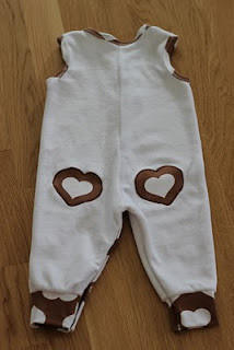 Tein tällaisen harjoitusasun ennen varsinaista lahjaa, koska en uskaltanut kokeilla uusia malleja ja työtapoja suoraan kalliisiin kankaisiin. Ja olipa kyllä hyvä, että tein nämä. Huomasin, että KAM-nepit on liian isoja vauvanvaatteisiin ja toisaalta taas pienemmät KAM-nepparit ei tahdo pysyä yhtään paksummassa kohdassa. Haalarin etukappaleista tuli epäsuhtaiset, saa olla tarkkana, että kantatessa venyttää kumpaakin puolta yhtä paljon. Bodyn käännettävät resorit oli myös tässä versiossa turhan naftit. Kyllä tämä asu kuitenkin omaan käyttöön kelpaa, muutenkin tykkään tästä asusta ulkonäöllisesti.